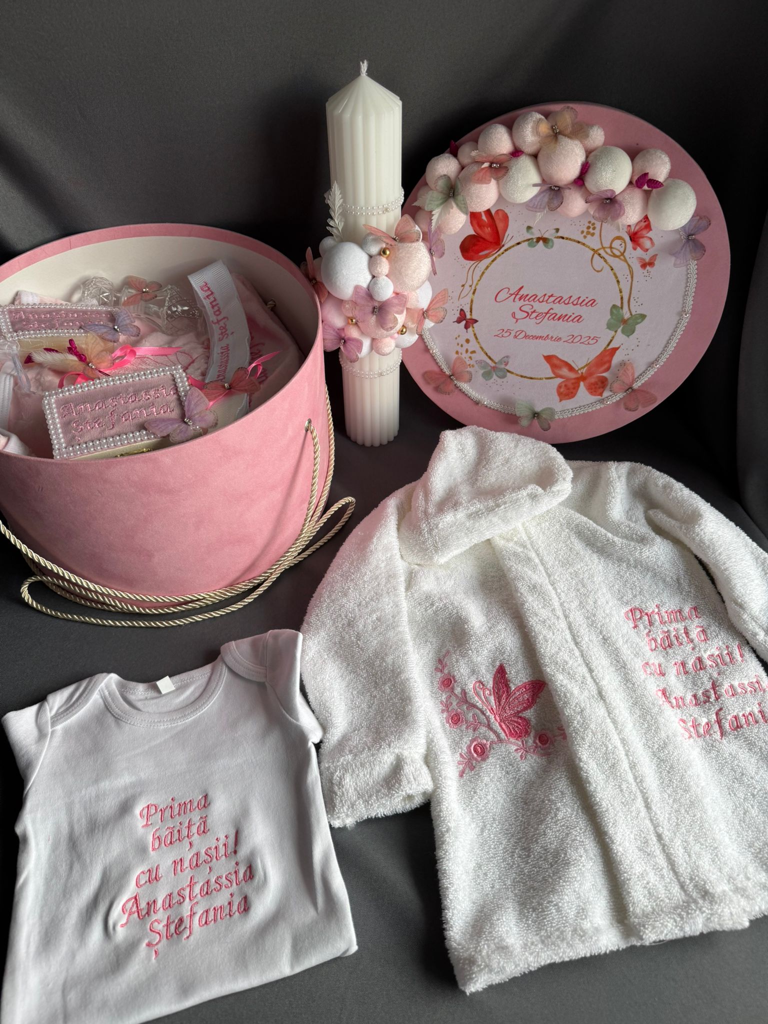 Lumanarea personalizată Îngeraș cu nume brodat, fagure roz