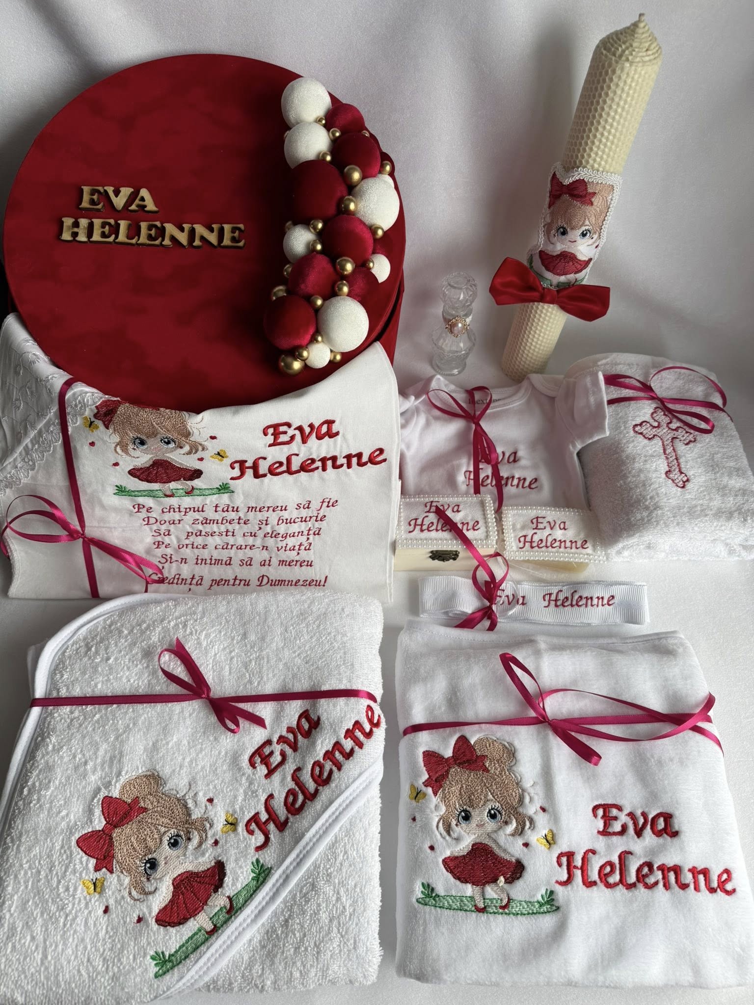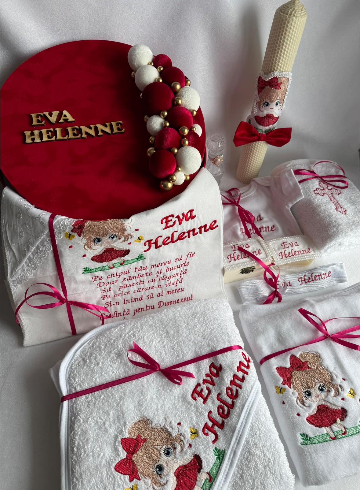 Set Trusou Botez Personalizat Fetita Rosu